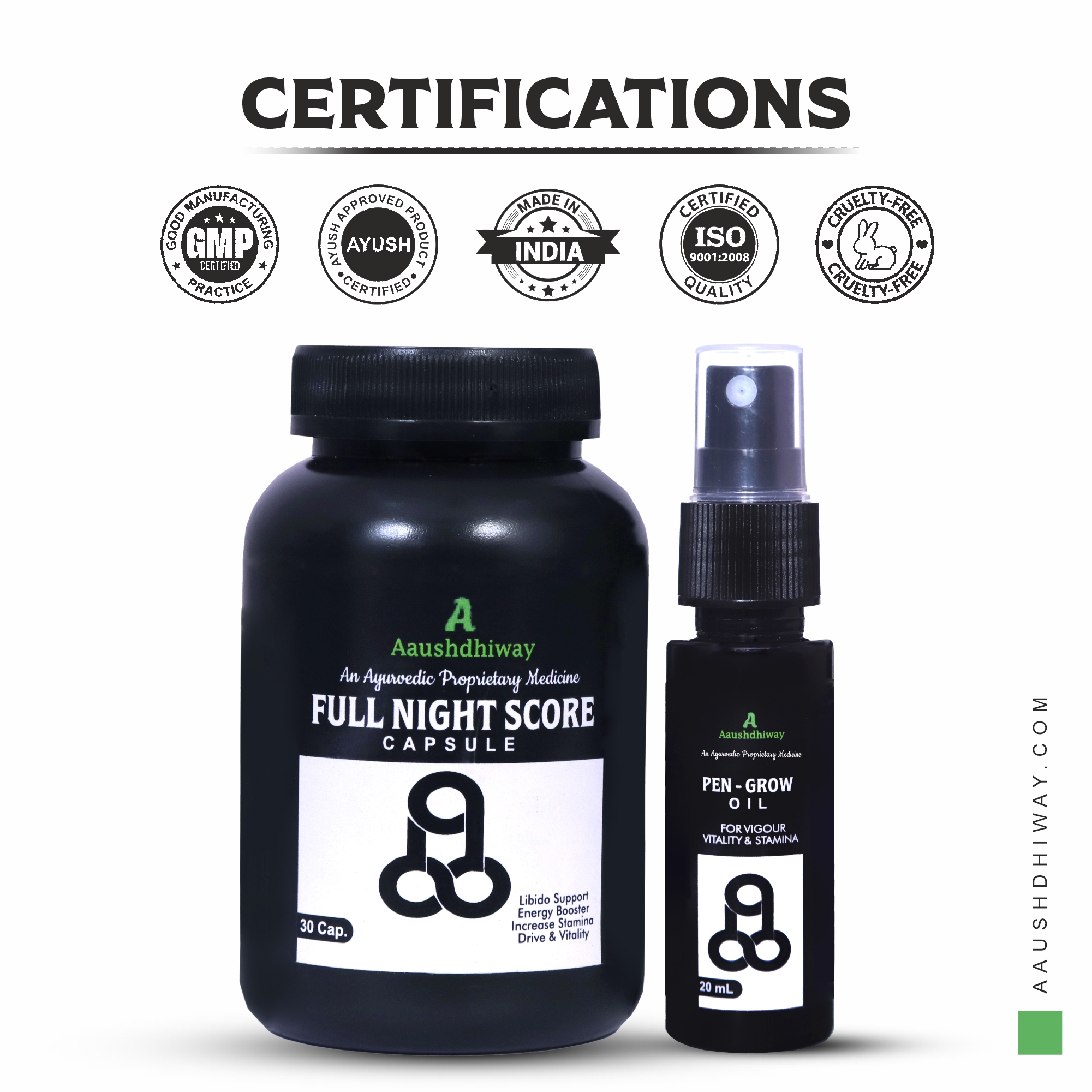 CONVENIENT COMBO PACK :- This combo pack contains a 30-capsule bottle of Full Night Score and a 20ml bottle of Pen-Grow oil for a comprehensive solution.