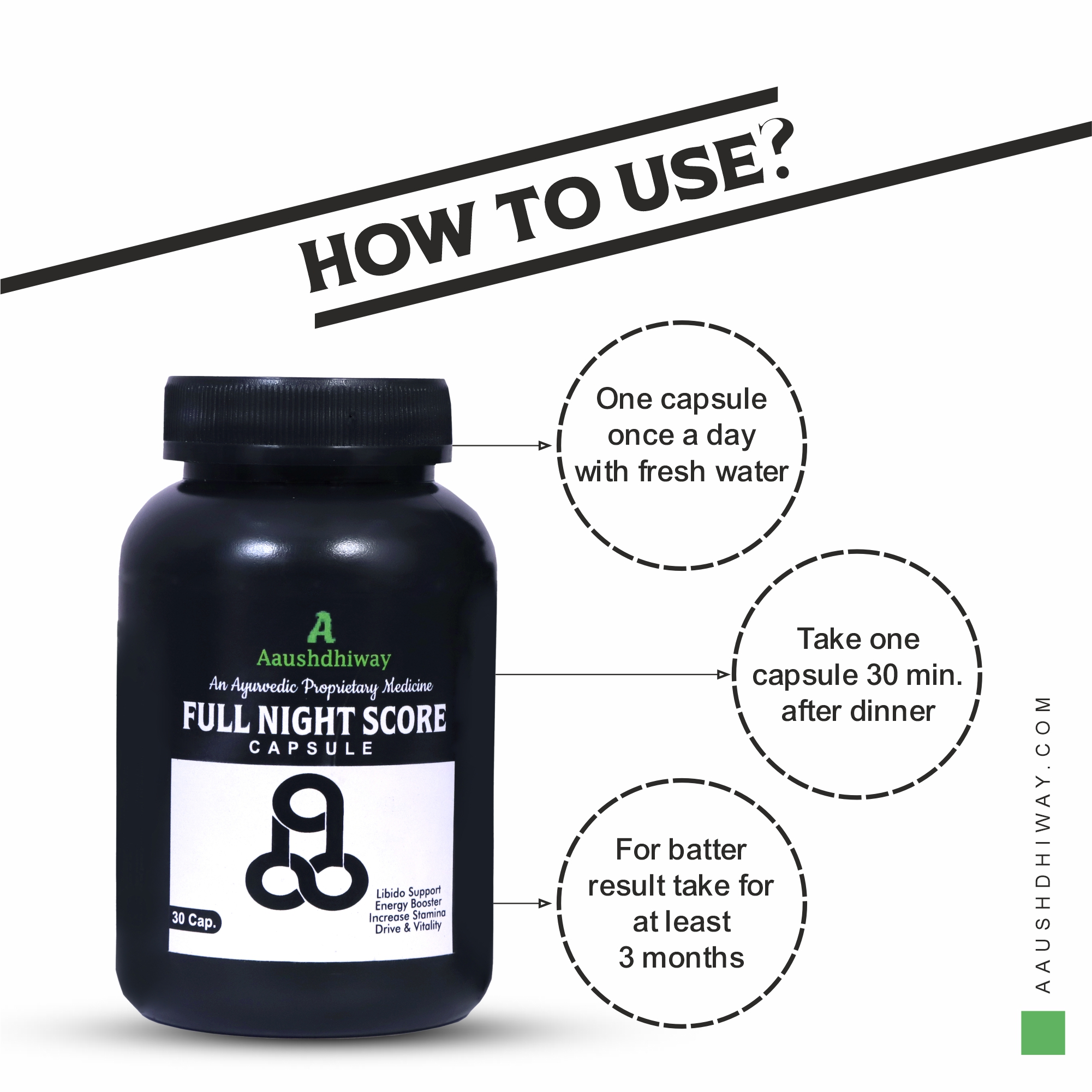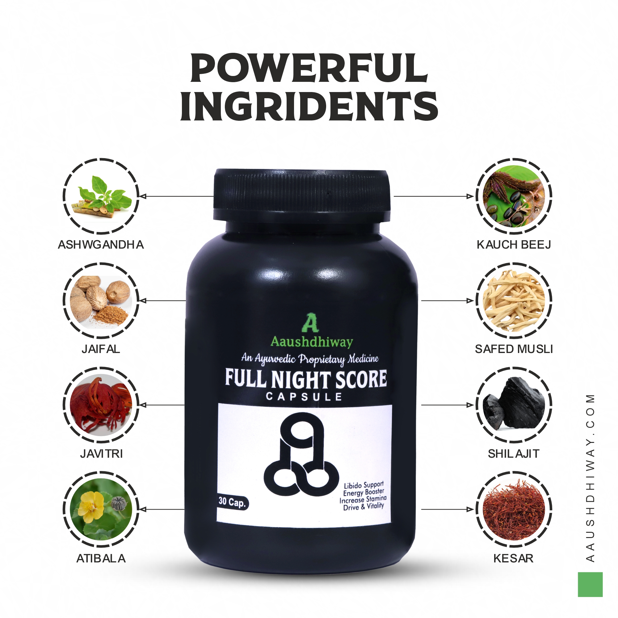 Aaushdhiway’s. COMBO PACK  Potent Formulation: Full Night Score capsule is an ayurvedic proprietary medicine that helps increase helpfull for Strength, Energy & Immunity and Ayurvedic Supplement for Stamina & Wellness  & Stamina Booster For Mens Wellness.